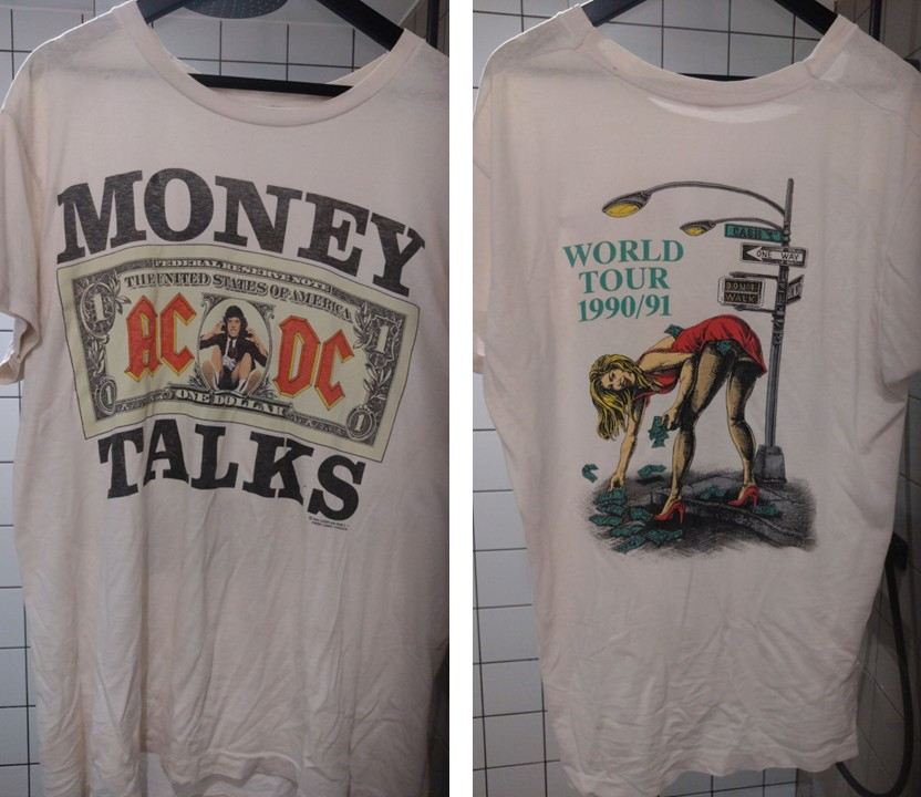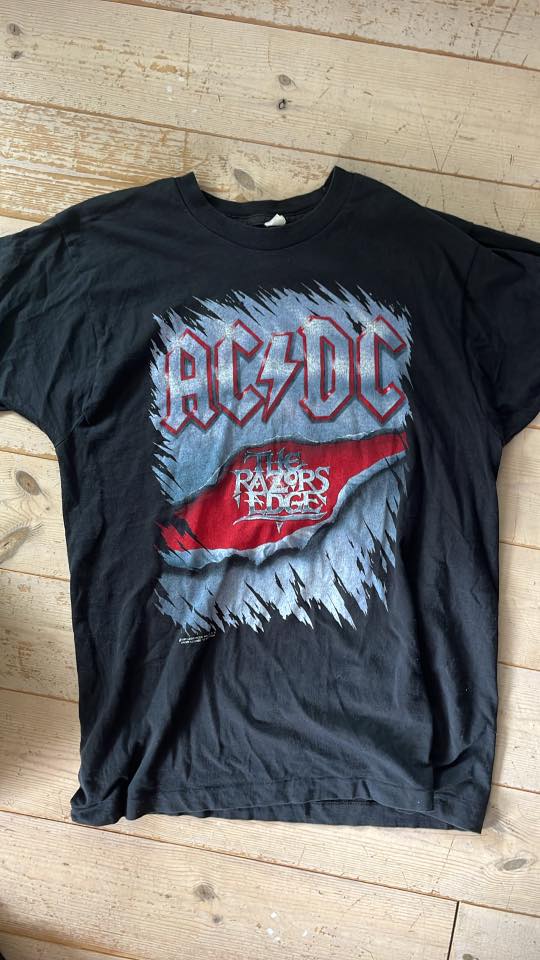 T-shirt til venstre er fra første konsert i Oslo Spektrum (24/3-91). Den til høyre er fra The Razors Edge World Tour 1990/ 91.