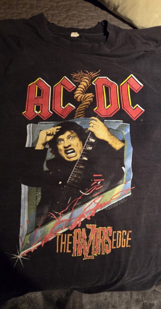 Det virkelige dilemmaet er: «Hvilken t-shirt skal jeg ha på meg?! «Gå klassisk og safe med den falmede “Back In Black”-trøya du aldri har vasket? Kjøre trøya fra forrige «Rock Or Bust Tour» eller «Black Ice«, eller sitter du med noen unike t-shirt skatter som f. eks. fra «Highway To Hell» eller «Let There Be Rock Tour«?
