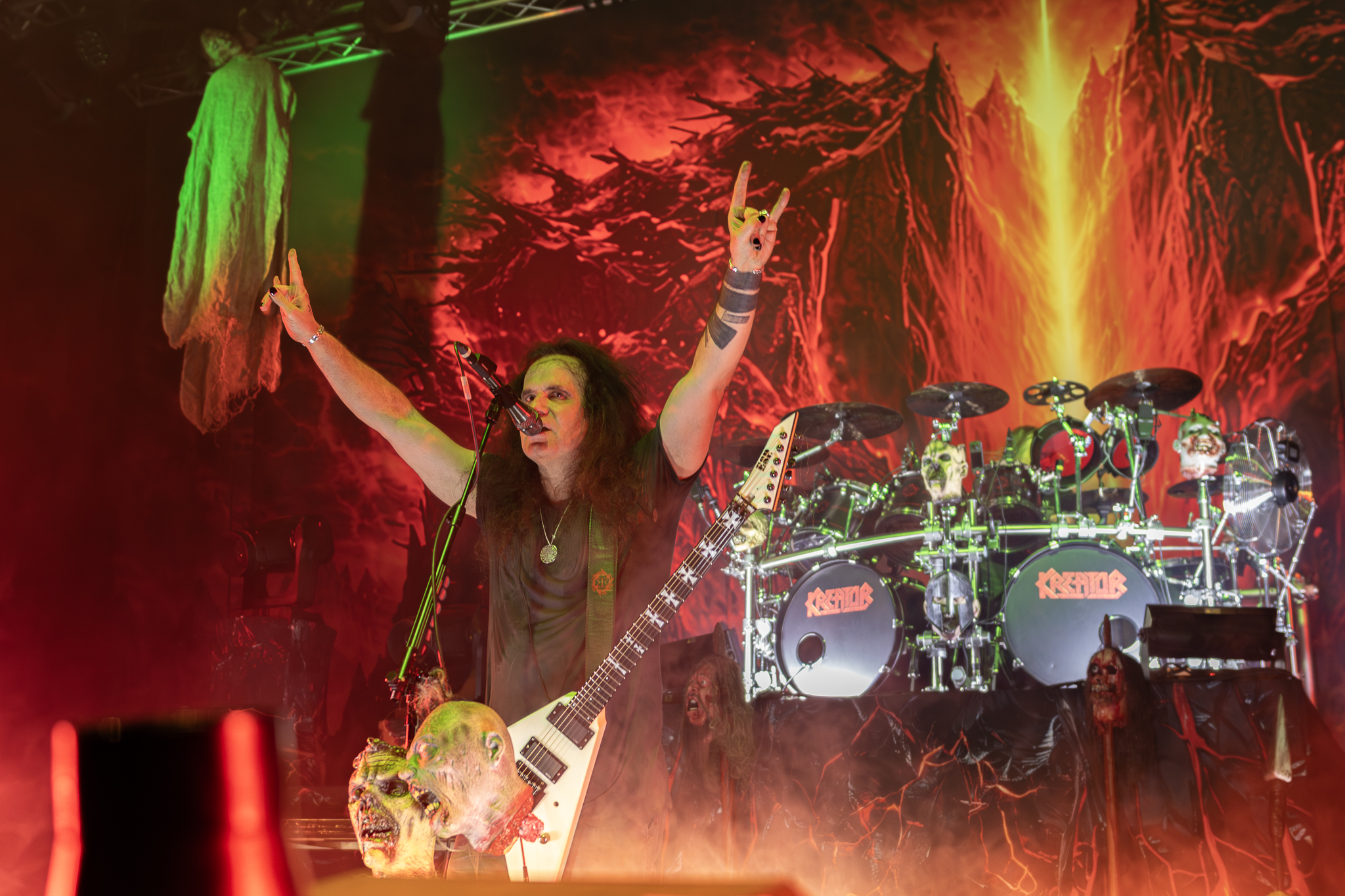 Kreator er visstnok et av de mest-selgende tyske thrash metal bandene noensinne. Og er det noe som har vært stort rundt i verden i flere tiår, så er det tysk thrash metal. Kreator spilte allerede i 1989 første gang i Norge og har en rekke konserter bak seg her hos oss. Noe også Mille påpekte under konserten. Han snakket varmt om publikummet, som spente seg fra de som hadde vært med siden starten og ikke minst alle nye underveis. Denne kvelden var alle ett.