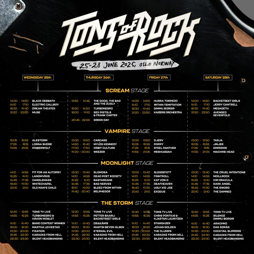Det er bare å begynne nedtellingen til den utsolgte konserten på Tons of Rock. Bandet spiller på hovedscenen Scream Stage under åpningsdagen onsdag 25. juni kl. 18.30 i forkant av Muse.